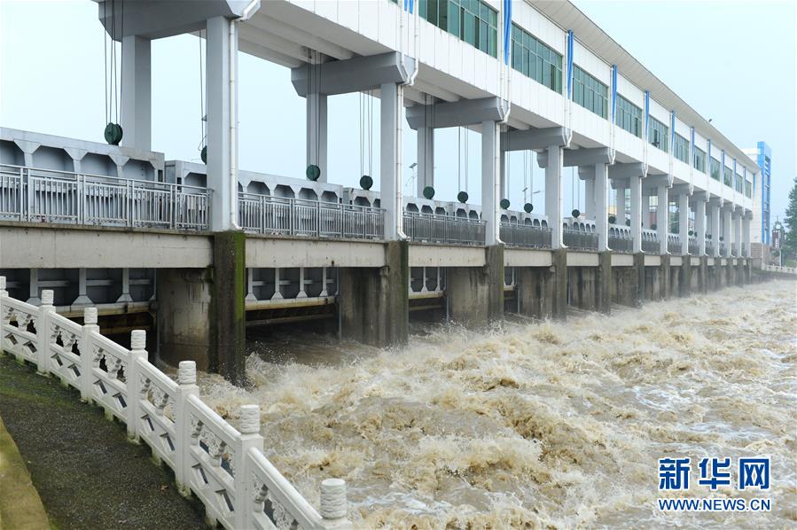 7月20日,洪水通過(guò)王家壩閘涌入蒙洼蓄洪區(qū)。當(dāng)日8時(shí)32分,淮河干流王家壩閘開(kāi)閘泄洪。受近期強(qiáng)降雨影響,淮河干流王家壩站水位19日快速上漲,7月20日6時(shí)36分水位漲至29.66米,超過(guò)保證水位0.36米?;春油跫覊伍l開(kāi)閘泄洪,蒙洼蓄洪區(qū)啟用。新華社記者黃博涵攝