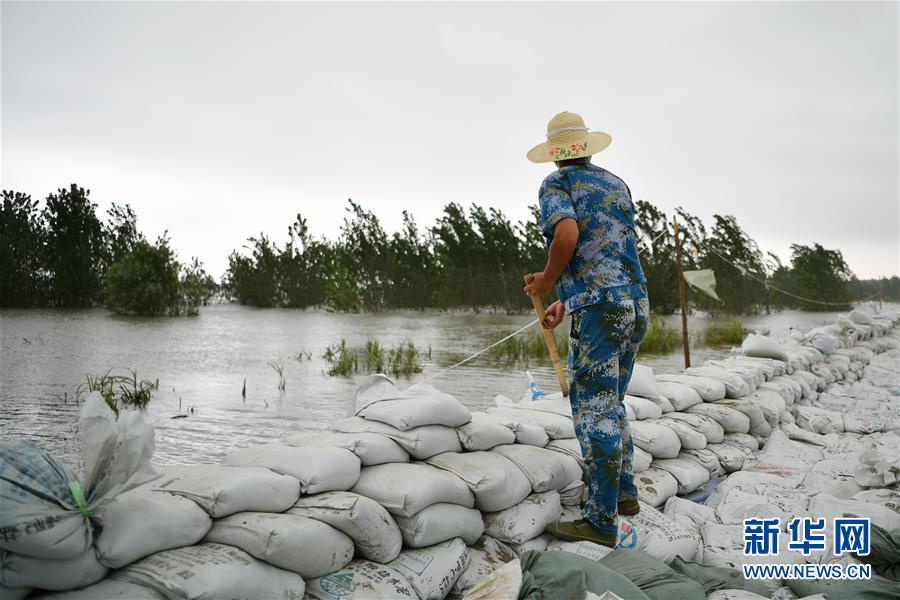 劉良武在江洲鎮(zhèn)的長(zhǎng)江堤壩上巡查(7月19日攝)。