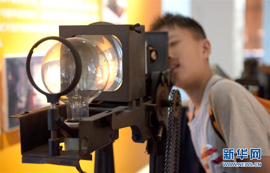 2019年8月29日,參觀者在西影電影藝術(shù)體驗中心參觀展出的老式幻燈機(jī)。當(dāng)日,陜西省西安市西影電影藝術(shù)體驗中心正式對外開放。新華社記者劉瀟攝