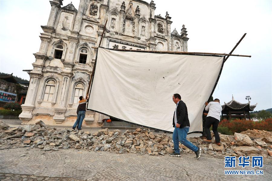 2019年3月19日,在天柱縣坌處鎮(zhèn)三門塘村,黃宜?。ㄖ校┰诖罱娪安シ拍徊?。侗族青年黃宜印是貴州省黔東南苗族侗族自治州天柱縣的一名公益電影放映員。從2014年起,他常年行走在大山里,為山區(qū)群眾播放電影。僅2018年,黃宜印就在天柱縣的37個村寨播放電影444場。新華社記者歐東衢攝