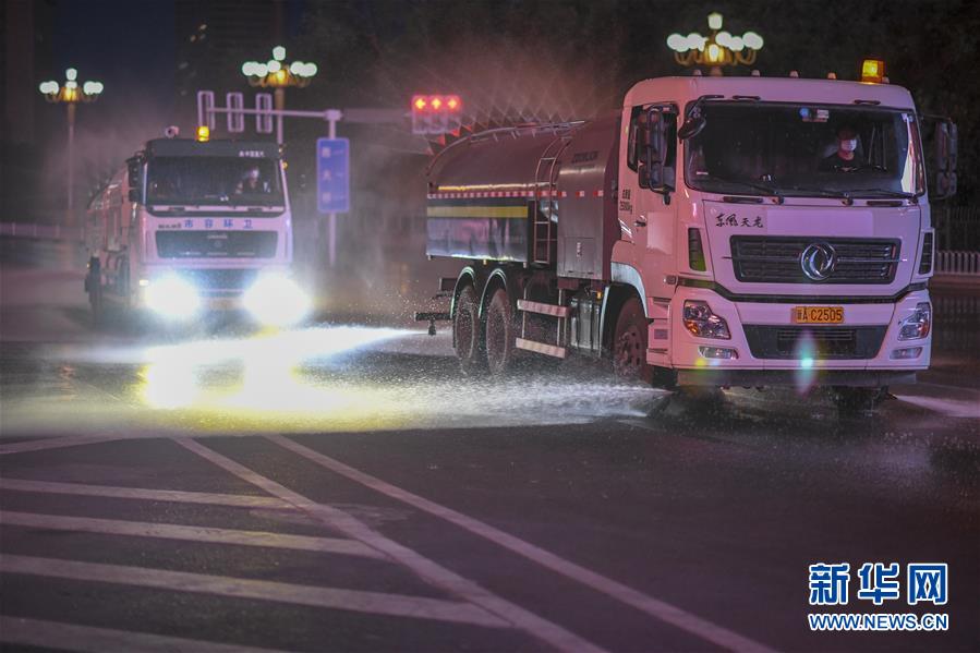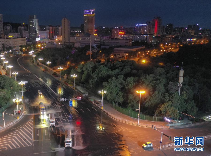 7月20日,烏魯木齊市天山區(qū)城管局清運(yùn)隊(duì)的三臺(tái)工作車(chē)輛在市區(qū)光明路進(jìn)行消殺作業(yè)。烏魯木齊市天山區(qū)城管局自7月17日起,對(duì)天山區(qū)的主次干道76條及235條巷道進(jìn)行集中消殺。目前,烏魯木齊市對(duì)重點(diǎn)區(qū)域進(jìn)行全面消毒消殺。新華社記者趙戈攝