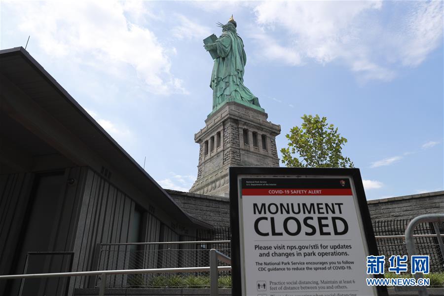 7月20日,美國(guó)紐約自由島上一處提示牌顯示自由女神像內(nèi)部的參觀仍處于暫停狀態(tài)。美國(guó)紐約市20日繼續(xù)推進(jìn)經(jīng)濟(jì)重啟計(jì)劃,宣布開(kāi)始進(jìn)入解封新階段,進(jìn)一步允許部分低風(fēng)險(xiǎn)文娛活動(dòng)重啟。自由女神像所在的自由島對(duì)公眾開(kāi)放,但雕像內(nèi)部和博物館仍關(guān)閉。新華社記者王迎攝