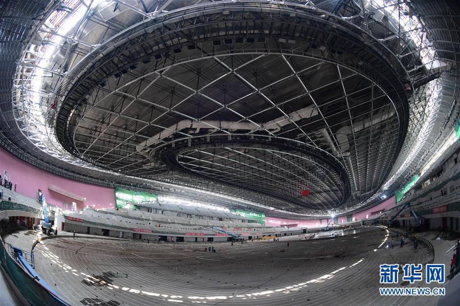 這是7月22日在北京拍攝的正在施工的國家速滑館內(nèi)景。新華社記者張晨霖?cái)z