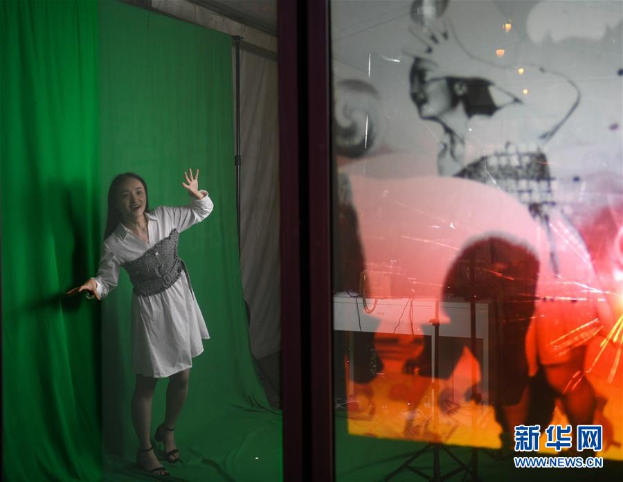 7月23日晚,在成都市成華區(qū)望平街濱河路的天府文創(chuàng)大集市上,游客在體驗(yàn)虛擬數(shù)字投影設(shè)備。新華社記者 王曦 攝