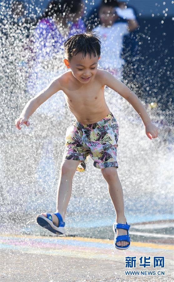 7月24日,一名小男孩在北京華熙LIVE·五棵松商業(yè)街區(qū)的一處噴泉戲水。北京市氣象局7月24日傍晚發(fā)布稱,24日截至16時(shí)30分,平原大部分地區(qū)出現(xiàn)37℃以上高溫天氣,局地氣溫超過40℃。北京市已于23日發(fā)布高溫藍(lán)色預(yù)警,預(yù)計(jì)25日全市大部分地區(qū)日最高氣溫仍將達(dá)35℃以上。新華社記者陳曄華攝