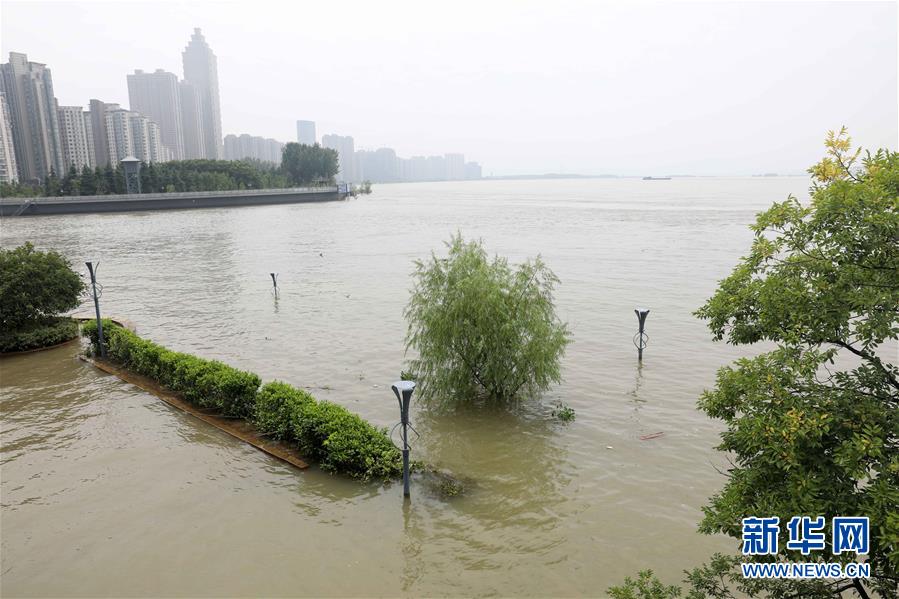 這是被江水淹沒的蕪湖市濱江公園一角(7月25日攝,無人機照片)。新華社記者 曹力 攝