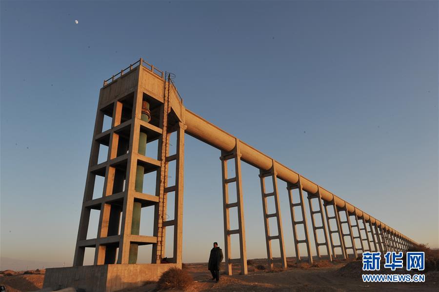 這是位于紅寺堡境內(nèi)的寧夏扶貧揚黃灌溉工程泵站輸水管道(2009年12月27日攝)。新華社記者 王鵬 攝