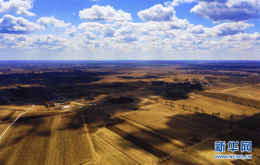 吉林省松原市長(zhǎng)嶺縣光明鄉(xiāng)完成備耕整地工作后等待耕種的玉米地(4月23日攝,無人機(jī)照片)。新華社記者 許暢 攝