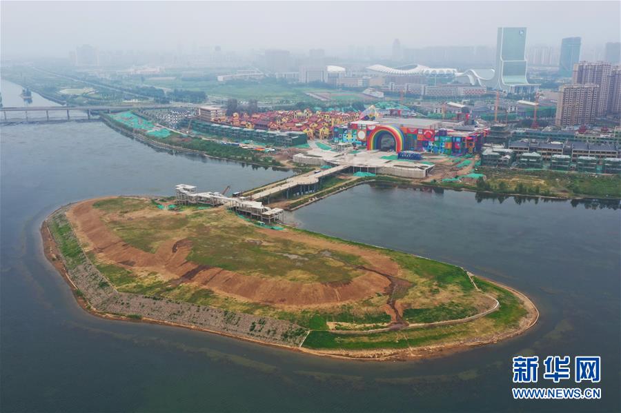 7月28日拍攝的建設(shè)中的遷安市中唐·天元谷文化旅游綜合體項目(無人機(jī)照片)。新華社記者楊世堯攝