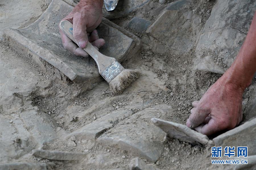 工作人員在河南省開封市州橋及附近汴河遺址進行清理發(fā)掘(7月27日攝)。新華社記者李安攝