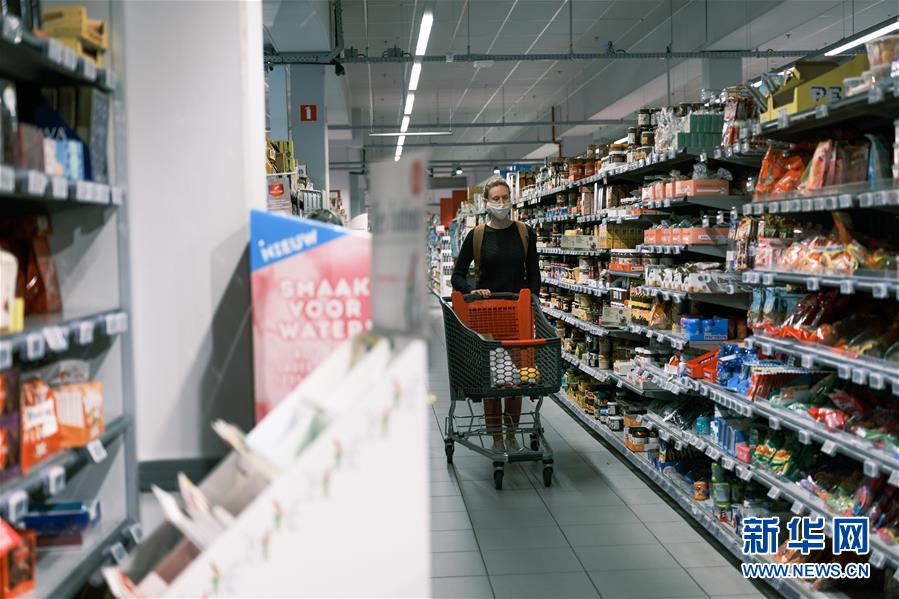 7月29日,一名戴口罩的顧客在比利時布魯塞爾一家超市采購。為應對近期有所抬頭的疫情,比利時政府決定收緊相關防控措施,包括從7月29日至8月底一個家庭能密切接觸的親友人數(shù)將由過去的最多15人減至5人;大型活動的人數(shù)限額減半;婚禮、宴會等私人聚會最多不超過10人等。新華社記者張鋮攝