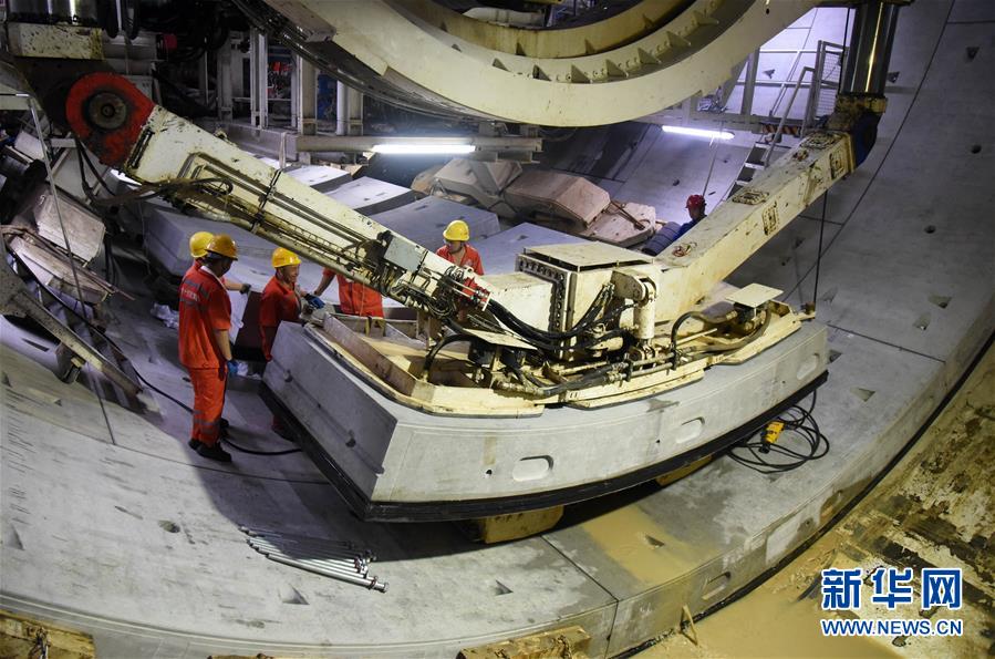 7月29日,“萬里黃河第一隧”——濟(jì)南黃河隧道工程施工人員在施工作業(yè)。新華社記者王凱攝