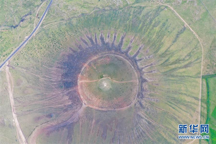 這是烏蘭哈達(dá)火山群的一處火山口(7月29日攝,無人機(jī)照片)。新華社記者徐欽攝
