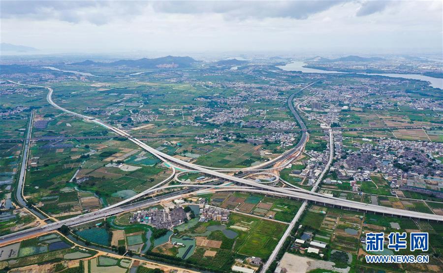 這是已經(jīng)建設(shè)完成的潮汕環(huán)線高速公路上北互通立交,沈海高速公路從該互通立交下面穿過(無(wú)人機(jī)照片,7月31日攝)。新華社記者劉大偉攝