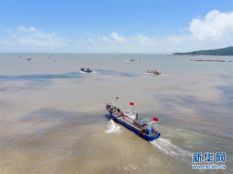 8月1日,在福建省霞浦縣三沙鎮(zhèn)海域,漁船開漁出海(無人機(jī)照片)。當(dāng)日,福建省海域的燈光圍(敷)網(wǎng)、張網(wǎng)、刺網(wǎng)、桁桿蝦拖和籠壺作業(yè)漁船結(jié)束為期3個月的休漁期,開漁出海。在福建省霞浦縣三沙鎮(zhèn),近兩百艘漁船起航駛離碼頭,開始海上捕魚作業(yè)。新華社記者姜克紅攝