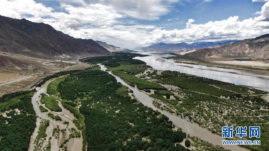 雅魯藏布江岸邊的綠樹(6月27日攝,無人機(jī)照片)。新華社記者晉美多吉攝