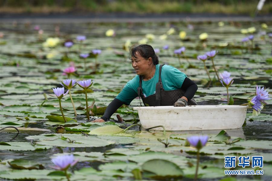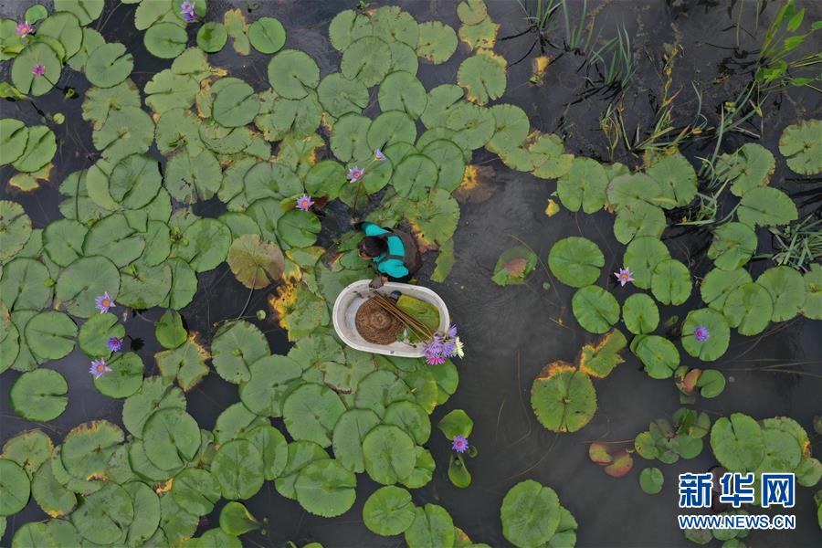 8月4日,藝溯家生態(tài)農(nóng)場(chǎng)工作人員在池塘采摘香水蓮花。近年來(lái),位于浙江湖州吳興區(qū)八里店鎮(zhèn)移沿山村的藝溯家生態(tài)農(nóng)場(chǎng),在約45畝的傳統(tǒng)水產(chǎn)養(yǎng)殖池塘上規(guī)?;N植香水蓮花,既凈化水質(zhì),又提高了經(jīng)濟(jì)效益。農(nóng)場(chǎng)還設(shè)計(jì)出種植、采摘和加工香水蓮花的工藝流程,以面向更多農(nóng)戶推廣。新華社記者黃宗治攝