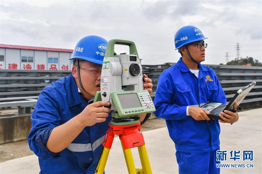 8月5日,中鐵十一局技術人員在清遠磁浮軌排基地對試驗梁軌排進行精調。目前,廣東首條中低速磁浮線——清遠磁浮旅游專線項目建設有序推進。廣東清遠磁浮旅游專線項目全長約38公里,分兩期建設。首期全長8.014公里,將在9月份開始鋪軌,預計在2020年底實現(xiàn)主體工程全面完工。新華社記者劉大偉攝