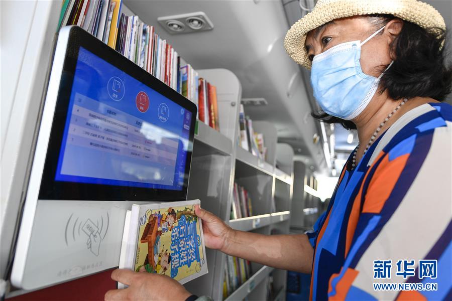 8月5日,長春市民在“流動圖書館”里自助辦理圖書借閱。三千冊圖書,一輛大巴車,穿梭在城市的街頭巷尾。在吉林長春,長春市圖書館利用流動圖書車,定期在市內(nèi)15個固定服務(wù)點(diǎn)間巡回流動,為市民提供便捷的圖書借閱服務(wù)。新華社記者許暢攝