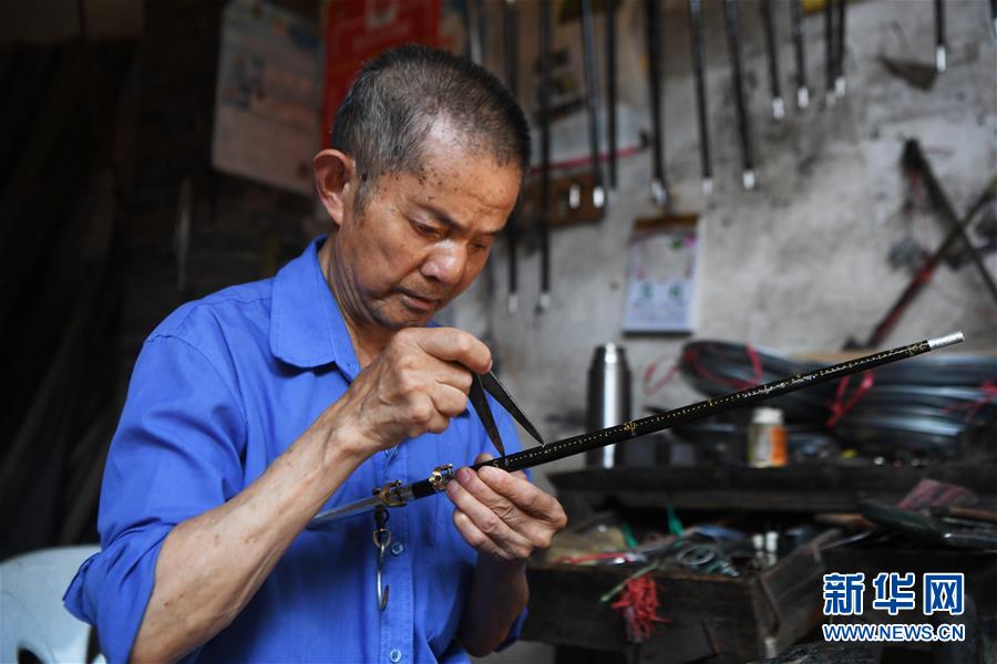 8月5日,豐盛古鎮(zhèn)經(jīng)營秤桿店的居民王澤喜在制作秤桿。近年來,重慶市巴南區(qū)引入社會(huì)資本,按照“修舊如舊、適度開發(fā)”的原則對豐盛古鎮(zhèn)進(jìn)行保護(hù)性修繕和景區(qū)化打造,讓古鎮(zhèn)在保留原有歷史人文風(fēng)貌的同時(shí),煥發(fā)新活力。新華社記者王全超攝