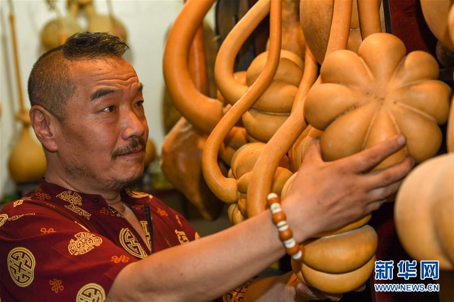 8月5日,侯景偉挑選適合創(chuàng)作的葫蘆。今年55歲的吉林四平人侯景偉自幼與家人學習雕刻、烙畫藝術。經(jīng)過多年潛心研究,他將浮雕和烙畫工藝相結(jié)合,通過拋光、起稿、雕刻、烙燙、套色等十余道工藝,制作展現(xiàn)傳統(tǒng)文化、民俗故事的葫蘆工藝品。2020年,侯景偉被評為四平市非物質(zhì)文化遺產(chǎn)項目侯氏葫蘆雕刻烙畫代表性傳承人。他說:“希望有更多人加入到非遺傳承隊伍中,讓小葫蘆‘講’出更多民俗故事。”新華社記者張楠攝