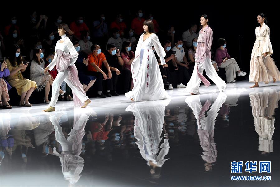 8月6日,模特在時裝秀上展示時裝。當日,2020中國(河南)國際大學生時裝周舉行河南大學生優(yōu)秀服裝設計專場展示。8月5日至7日,2020中國(河南)國際大學生時裝周在河南省新密市豫發(fā)密蘭小鎮(zhèn)舉行。新華社記者朱祥攝