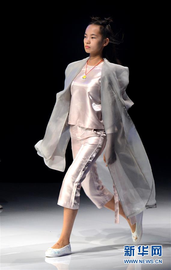 8月7日,小模特在T臺上展示童裝。當(dāng)日,2020中國(河南)國際大學(xué)生時裝周舉行童裝設(shè)計專場展示。8月5日至7日,2020中國(河南)國際大學(xué)生時裝周在河南省新密市豫發(fā)密蘭小鎮(zhèn)舉行。新華社發(fā)(海雨涵攝)