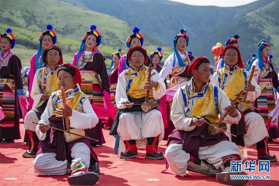 8月7日,在西藏首屆弦子舞展演現(xiàn)場,演出人員在表演弦子舞。當(dāng)日,西藏首屆弦子舞展演在昌都市芒康縣舉行。眾多演員同臺獻(xiàn)藝,表演國家級非物質(zhì)文化遺產(chǎn)弦子舞,吸引西藏各地的群眾前來觀看。新華社記者孫非攝