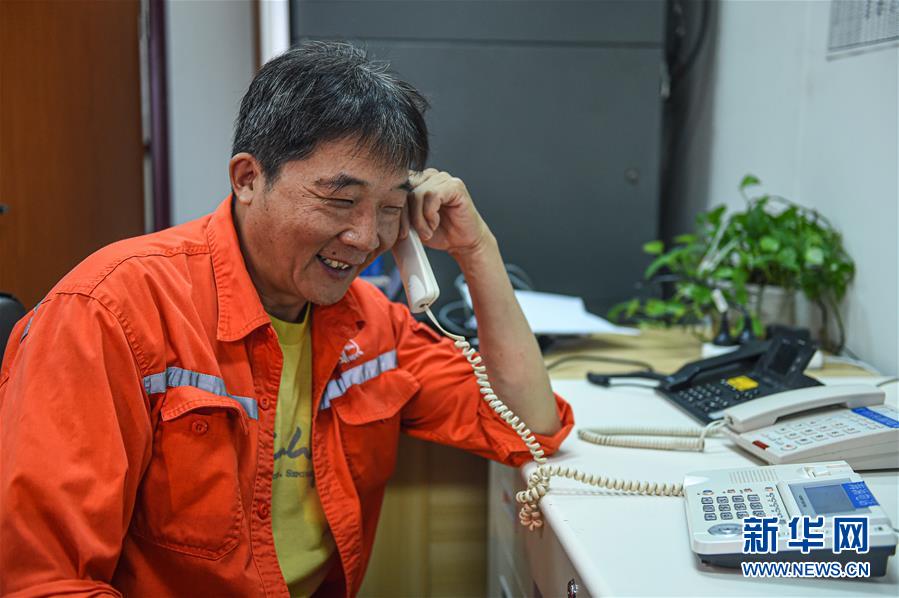 7月27日,在位于南海北部海域的勘探三號鉆井平臺上,一名工人通過衛(wèi)星電話與家人聯(lián)絡。鉆井平臺上沒有手機信號,這是鉆井工人與家人聯(lián)絡的重要渠道。新華社記者蒲曉旭攝