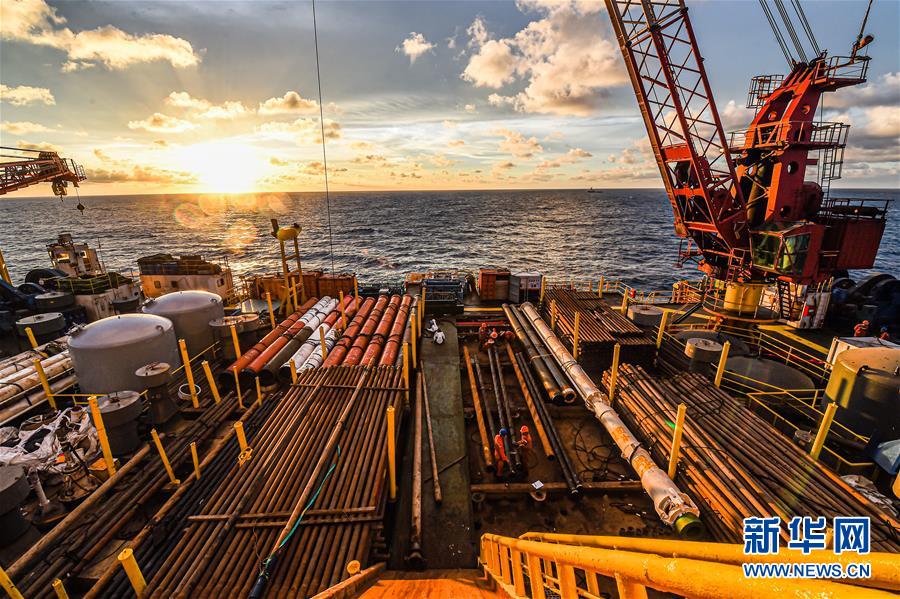 這是7月21日在南海北部海域拍攝的勘探三號(hào)鉆井平臺(tái)甲板。新華社記者蒲曉旭攝