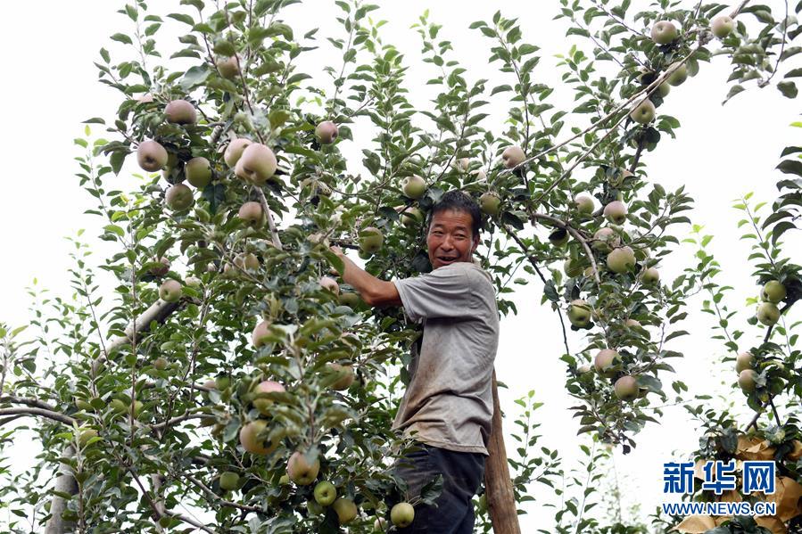 8月8日,昭通超越萬畝蘋果基地工人甄全米在蘋果園工作。近年來,云南省昭通市確立以蘋果產(chǎn)業(yè)為主導的現(xiàn)代農(nóng)業(yè)產(chǎn)業(yè)發(fā)展戰(zhàn)略。目前,該市蘋果種植面積近80萬畝,覆蓋全市20余個鄉(xiāng)鎮(zhèn),果農(nóng)種植蘋果年人均收入4000元以上,推動30多萬果農(nóng)依托蘋果產(chǎn)業(yè)實現(xiàn)脫貧致富,半城蘋果滿城香的“蘋果之城”正在烏蒙山區(qū)奮力崛起。新華社記者江文耀攝。