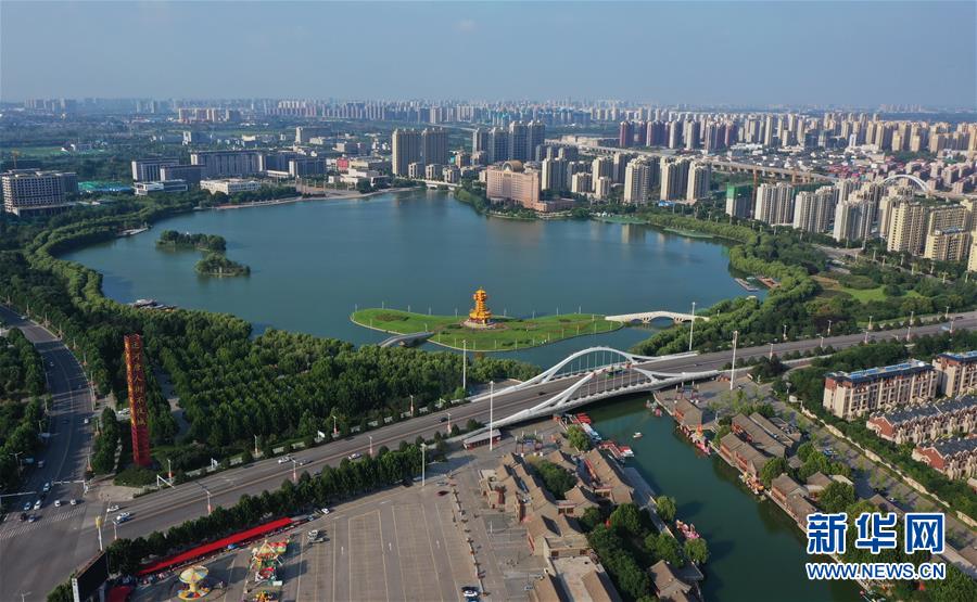 8月9日拍攝的唐山市豐南區(qū)惠豐湖景色(無(wú)人機(jī)照片)。近年來(lái),河北省唐山市豐南區(qū)全力推動(dòng)“全域治水、清水潤(rùn)城”工程,形成了以唐津運(yùn)河、人民公園生態(tài)廊道等以健身、休閑、旅游功能于一體的人水相親、城水相依的景觀環(huán)境,為綠色發(fā)展注入活力。新華社記者楊世堯攝。