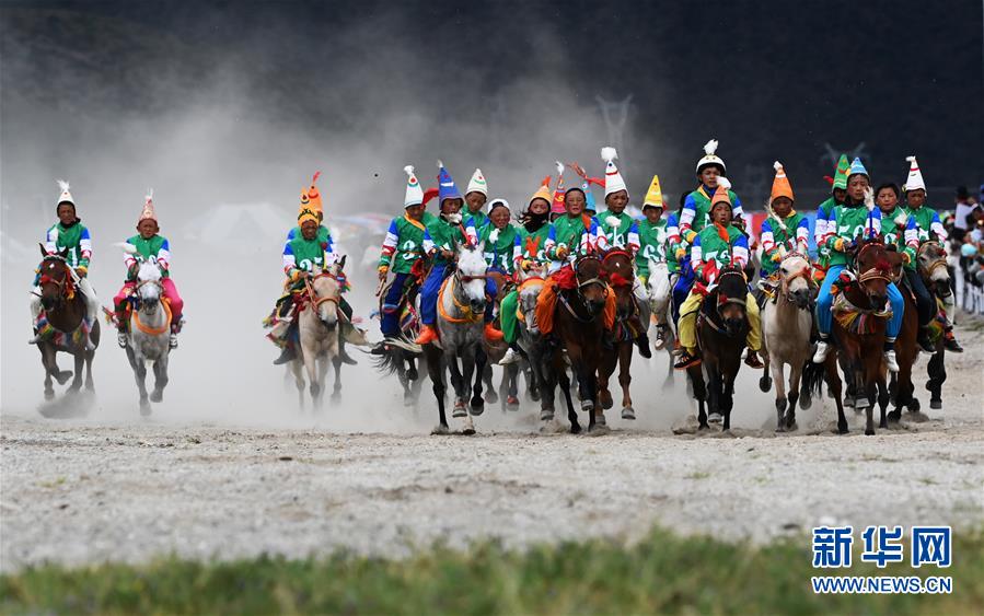 當(dāng)日,“當(dāng)吉仁”賽馬節(jié)比賽之一的五公里馬長(zhǎng)跑比賽在西藏拉薩市當(dāng)雄縣賽馬場(chǎng)舉行。一年一度的“當(dāng)吉仁”賽馬節(jié)8月8日在平均海拔4300米的當(dāng)雄縣開幕,來自當(dāng)雄草原的牧民,騎著自家的馬匹參加比賽,策馬揚(yáng)鞭,一決高下。