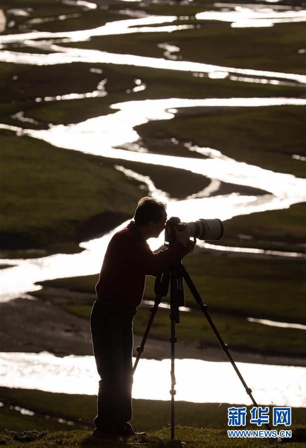 一名來自成都的攝影師在拍攝泥拉壩濕地(8月9日攝)。新華社記者江宏景攝。