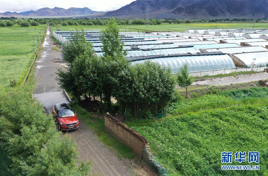 姐妹倆開(kāi)著剛買的小汽車將大棚出產(chǎn)的蔬菜運(yùn)往縣里的店鋪(無(wú)人機(jī)照片,8月3日攝)。新華社記者 李賀 攝