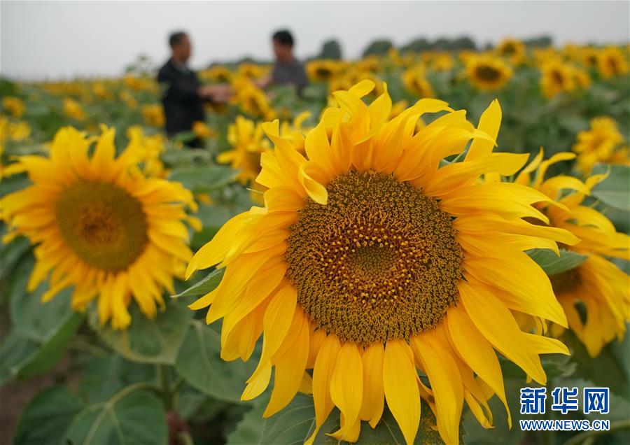 8月12日,在尚義縣三工地鎮(zhèn)有德元村,農(nóng)民在田間管護(hù)旱作油葵。新華社記者 楊世堯 攝