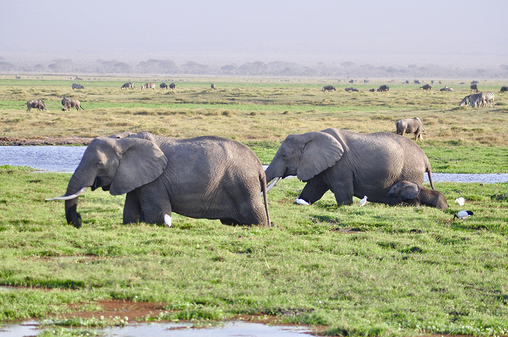肯尼亞?wèn)|南部,與坦桑尼亞接壤的安博賽利國(guó)家公園,距內(nèi)羅畢240公里,因水草豐美而成為野生非洲大象的樂(lè)園。