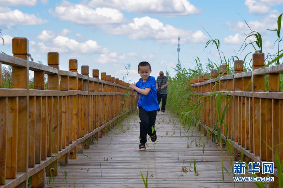 8月11日,游客在克什克騰旗達里諾爾湖北岸景區(qū)游玩??耸部蓑v旗位于內(nèi)蒙古自治區(qū)赤峰市西北部,境內(nèi)的湖泊、河流、草原、森林等自然景觀,讓人們流連忘返。新華社記者徐欽攝