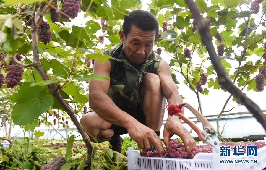 8月13日,在吉林省磐石市煙筒山鎮(zhèn)民主村,村民在葡萄大棚內(nèi)采摘葡萄。時(shí)下,吉林省磐石市煙筒山鎮(zhèn)棚膜葡萄園區(qū)內(nèi)的大棚葡萄進(jìn)入采摘季,農(nóng)民喜獲豐收。近年來,當(dāng)?shù)赝ㄟ^“共創(chuàng)”與“扶持”相結(jié)合的模式大力發(fā)展特色農(nóng)業(yè),建設(shè)葡萄種植大棚300余棟,以此帶動(dòng)村集體經(jīng)濟(jì)發(fā)展,助力農(nóng)民增收致富。新華社記者許暢攝