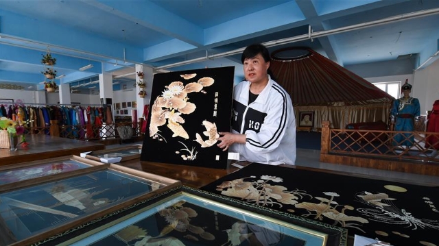 在新疆博湖縣,居民將蘆葦制作成工藝品。