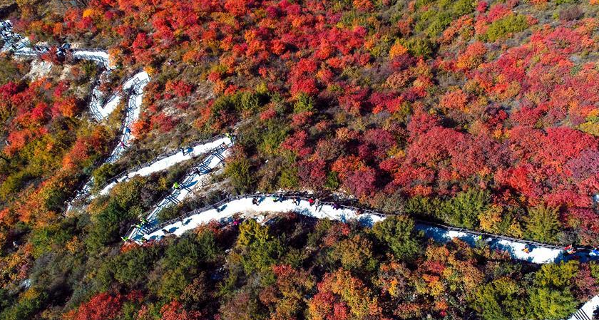 金秋十月,河北省涉縣偏城鎮(zhèn)太行紅葉大峽谷的紅葉進(jìn)入觀賞佳期,吸引眾多游客前來登山賞景。