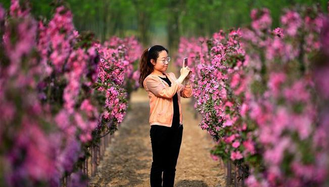 近日,河北省廊坊市安次區(qū)葛漁城鎮(zhèn)萬(wàn)畝桃園、千畝海棠花田迎來(lái)花期,吸引游客前來(lái)踏春賞花。