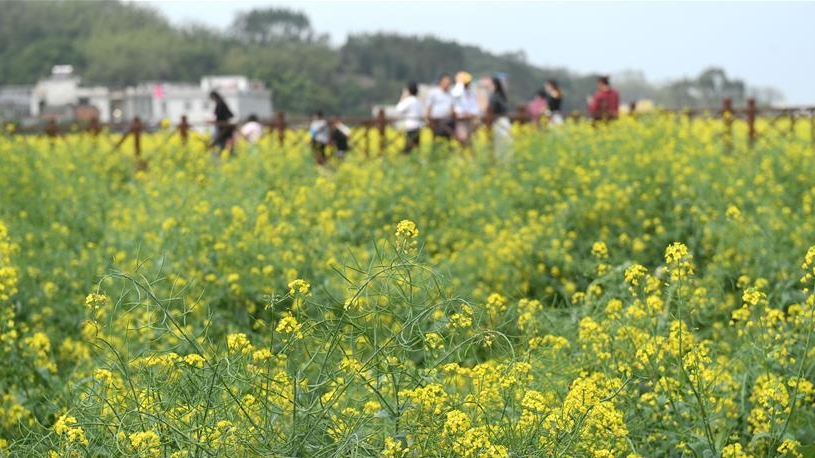 近日,廣西賓陽(yáng)縣古辣鎮(zhèn)境內(nèi)不少鄉(xiāng)村菜花一片金黃,呈現(xiàn)一派春意融融的宜人景象。
