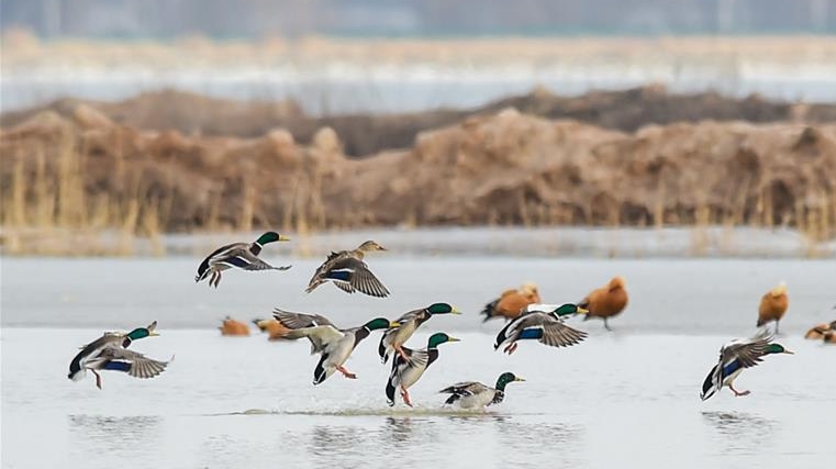 近日,隨著天氣回暖,內(nèi)蒙古自治區(qū)準(zhǔn)格爾旗大路鎮(zhèn)的黃河淺灘迎來(lái)大批候鳥。