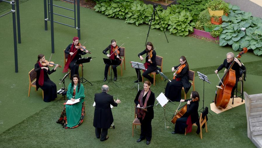 5月30日,奧地利首都維也納的一家名為“時(shí)代精神”的酒店為迎接“解封”后恢復(fù)營業(yè),在其庭院內(nèi)舉辦“窗口音樂會”。