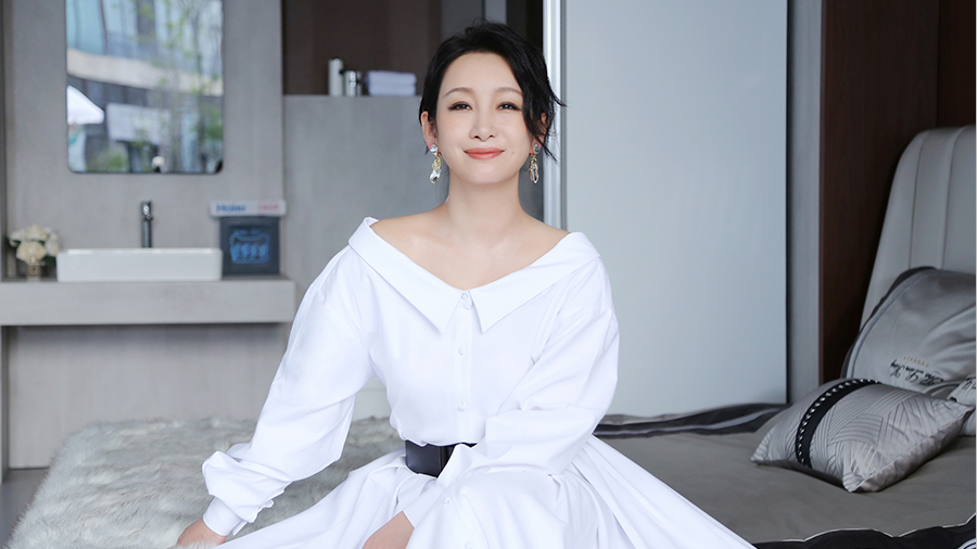 秦海璐穿露肩長裙美成畫報(bào) 幽默拋金句開辟直播新風(fēng)貌