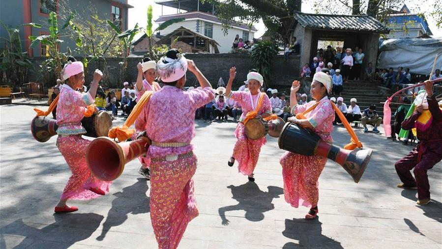 年末歲初,云南省普洱市景谷傣族彝族自治縣家家戶戶都會在經(jīng)濟條件允許的情況下舉行賧白象活動,邀請親朋好友歡聚在一起,跳象腳鼓舞,歡慶、祈福。