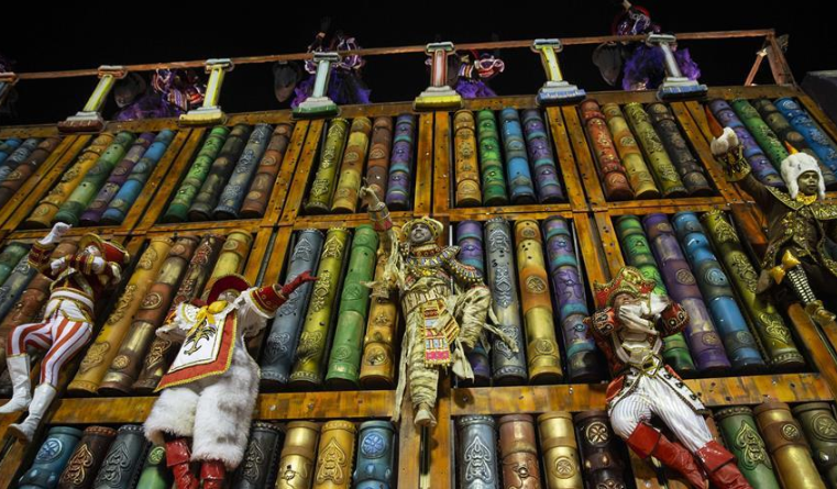 3月3日晚,2019年里約熱內(nèi)盧狂歡節(jié)特級組桑巴舞校在桑巴大道開始花車巡游表演。