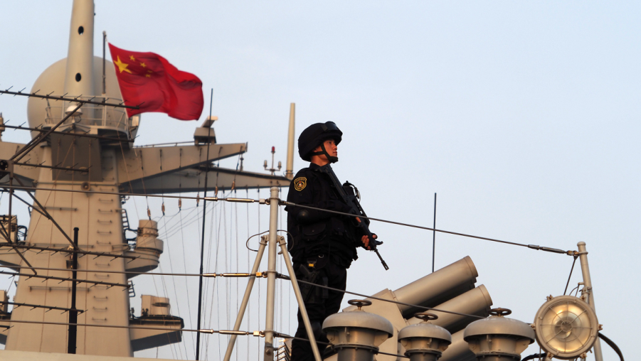 海軍第35批護航編隊特戰(zhàn)隊員在甲板上進行執(zhí)勤警戒。(具體拍攝日期地點不詳)