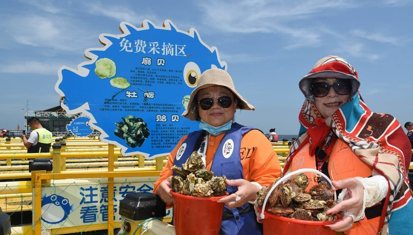 山東桑溝灣泓泰國家級海洋牧場引游客觀光